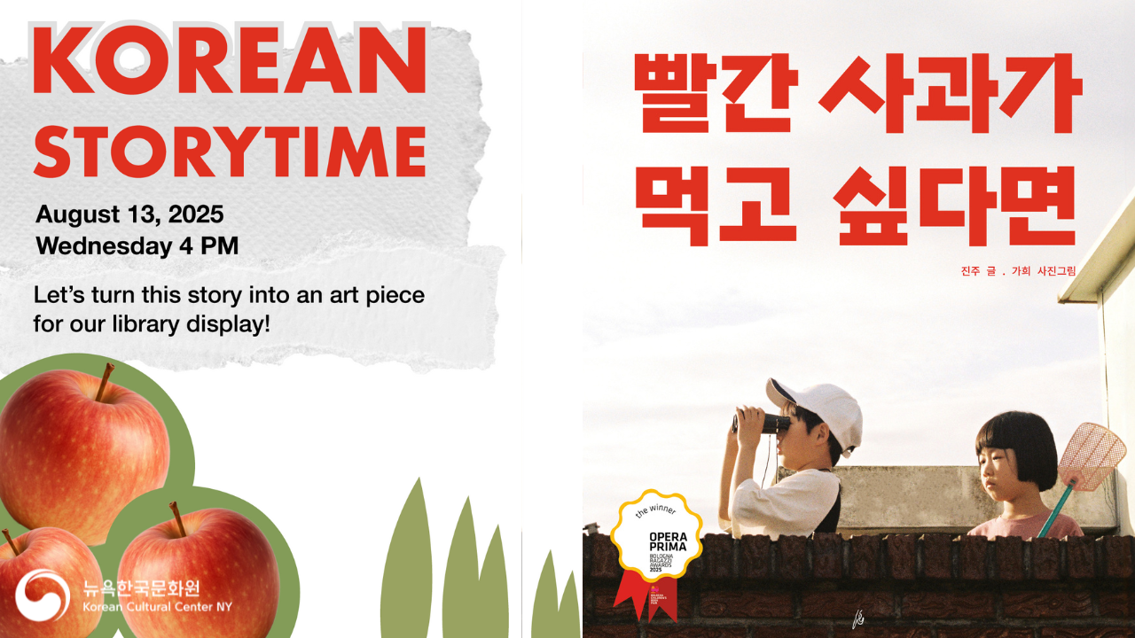 Join us for Korean Storytime featuring If You Want to Eat a Red Apple (『빨간 사과가 먹고 싶다면』), winner of the 2025 BolognaRagazzi Opera Prima Award, one of the world’s most prestigious honors in children’s literature.