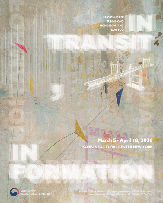 This exhibition brings together four artists—Kakyoung Lee, Buhm Hong, Hong Seon Jang, and Sun You—whose practices unfold between movement and becoming. Transit functions as a condition of passage through time, labor, and cultural frameworks, while formation describes processes through which forms and identities take shape without closure. Working across sculpture, installation, animation, and video, the artists operate within these open-ended conditions, occupying a dual state: always en route, and at the same time, becoming something else.