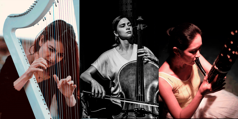 Curated by multi-Instrumentalist gamin, the fifth season of the Crossing Boundaries concert series features three concerts with the theme of Women in Music and kicks off with a concert on June 25 featuring three female musicians — Mariel Roberts (cello), gamin (piri,saenghwang) — playing along with screen of installation art work by Sook Jin Jo.